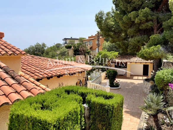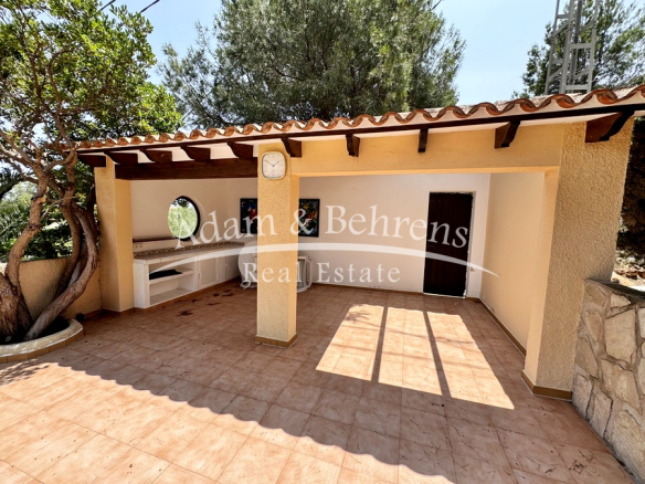 Der Außenbereich lädt zum Genießen des mediterranen Klimas ein. Mehrere sonnige Terrassen, ein überdachter Grillbereich sowie ein liebevoll angelegter Garten mit Obst- und Zitrusbäumen bieten zahlreiche Möglichkeiten zum Entspannen und Verweilen. Ein Carport mit automatischem Tor, zusätzlicher Stellplatz sowie ein Abstellraum sorgen für Komfort im Alltag. Zudem besteht die Möglichkeit, einen privaten Pool zu errichten.
