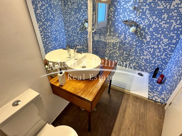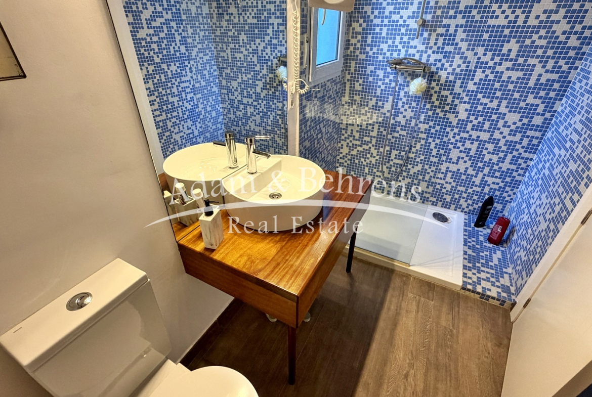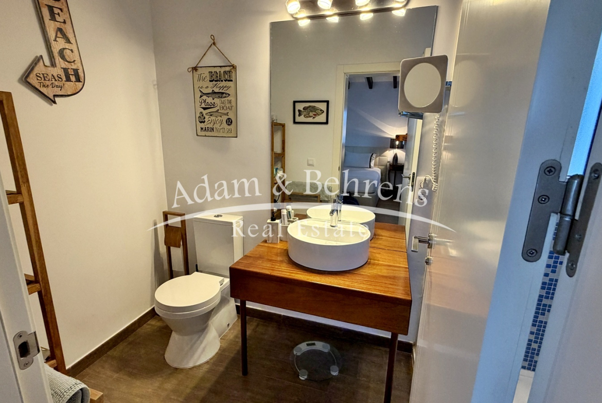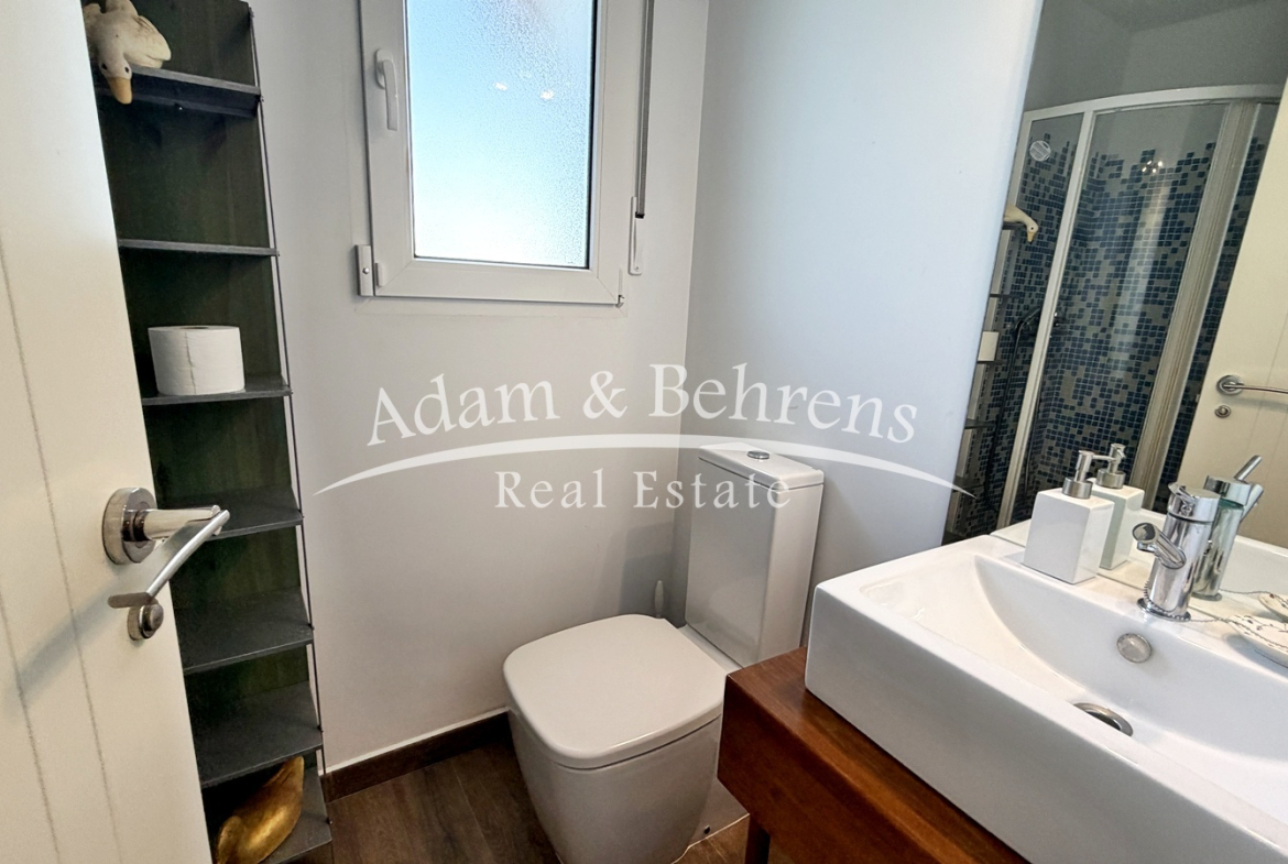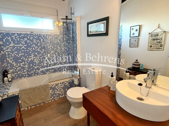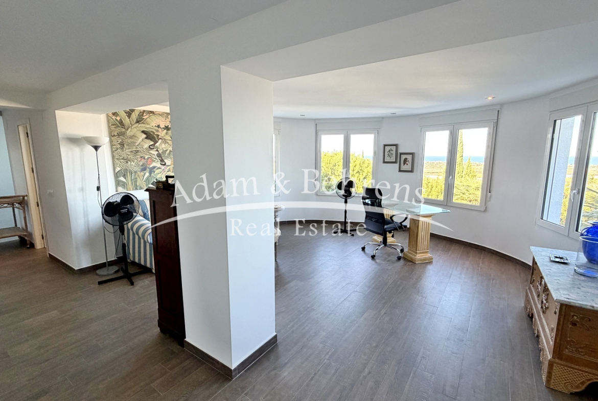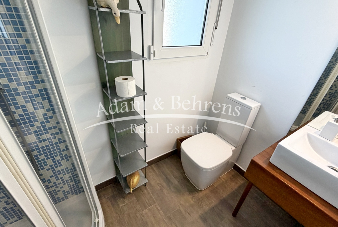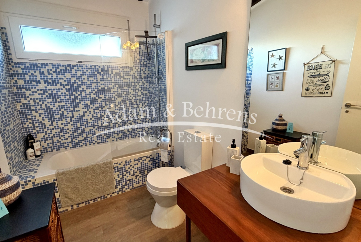 Hier befindet sich eine separate Gästewohnung mit Wohnzimmer, Schlafzimmer, Bad und einem großen Abstellraum. Auch auf dieser Ebene genießen Sie einen herrlichen Meerblick.