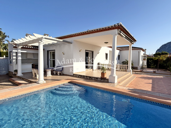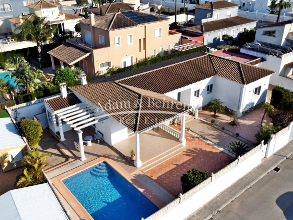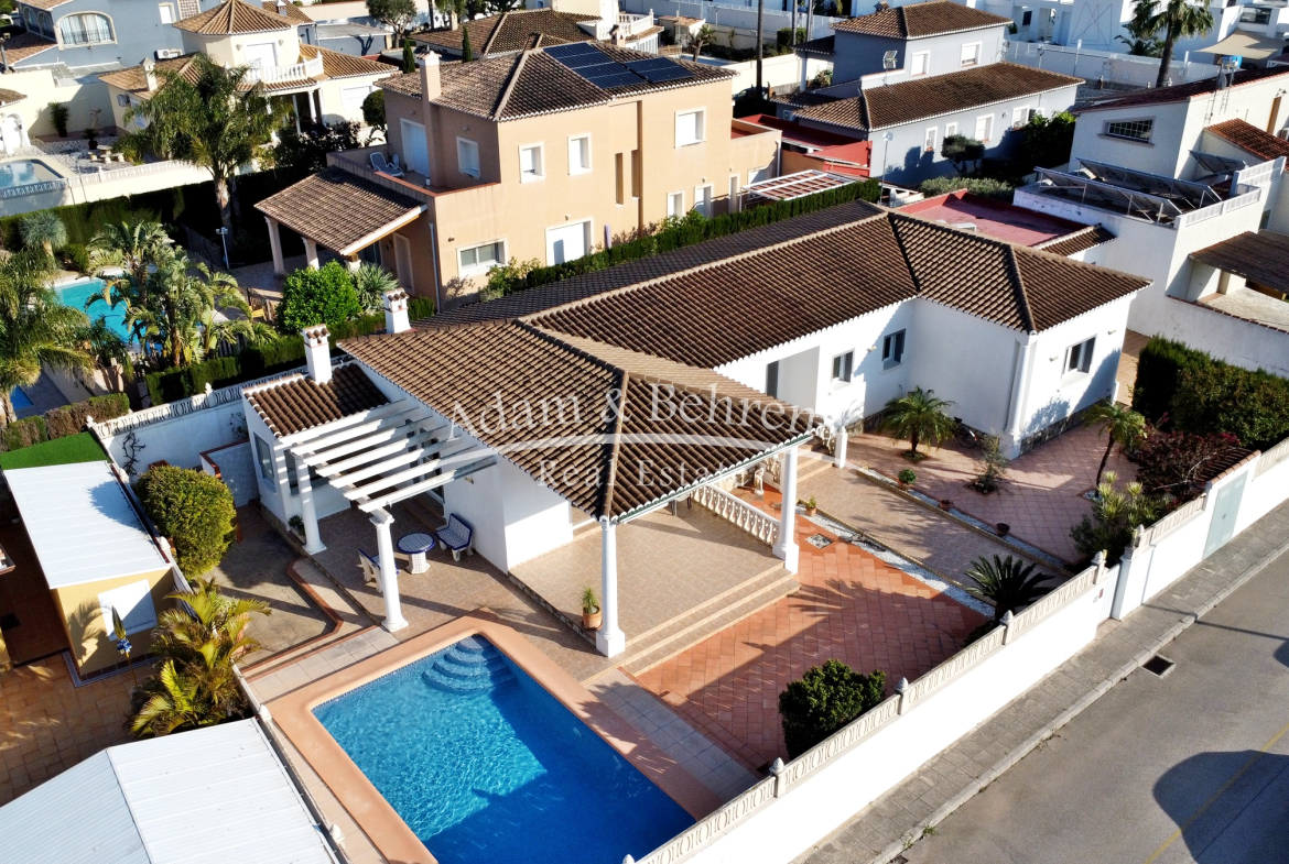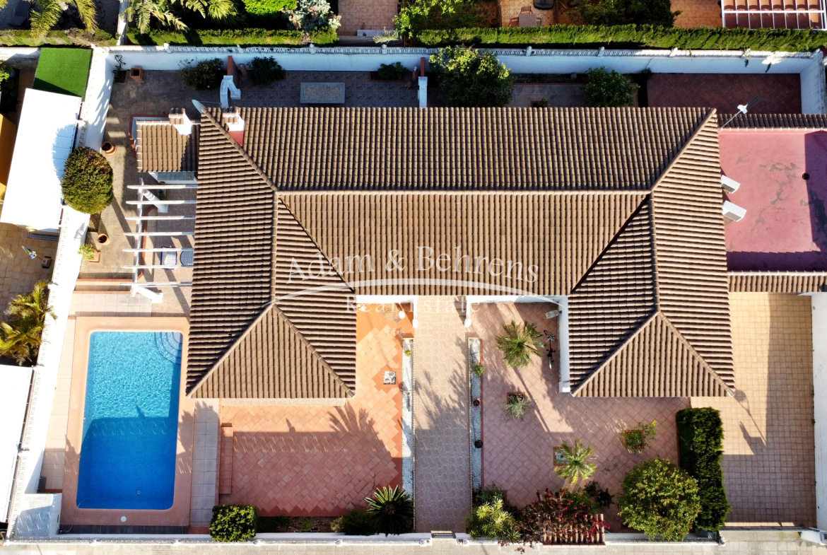 Diese gepflegte, ebenerdige Villa befindet sich in ruhiger Wohnlage von El Verger an der nördlichen Costa Blanca – nur ca. 1,3 km vom Strand und etwa 8 km von Dénia entfernt. Das Haus überzeugt durch eine durchdachte Raumaufteilung, einen schönen Außenbereich mit Pool sowie einen unverbaubaren Blick auf die umliegenden Berge.